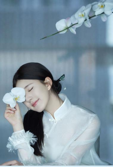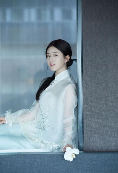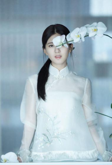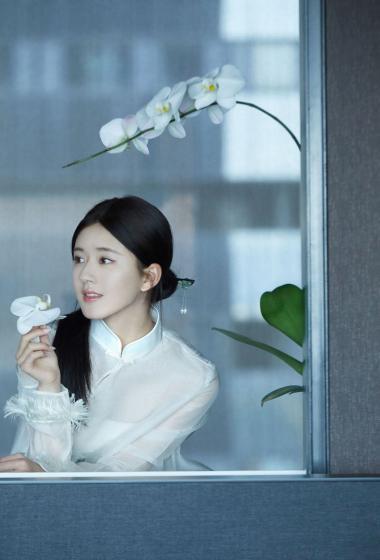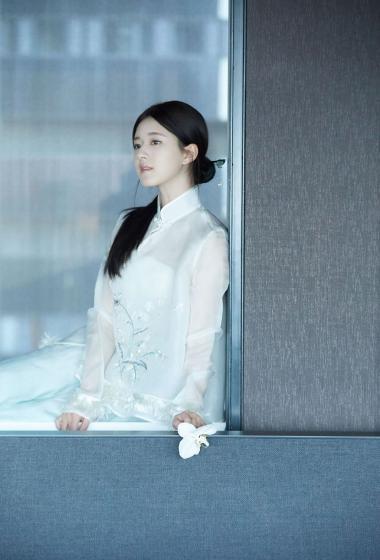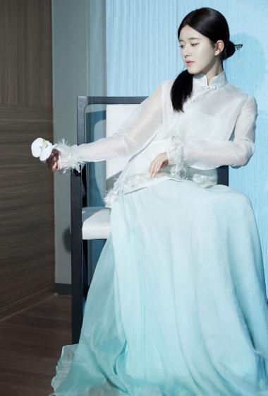 [明星写真] 美女赵露思白色薄纱长袖连衣裙大家闺秀的感觉【10P】